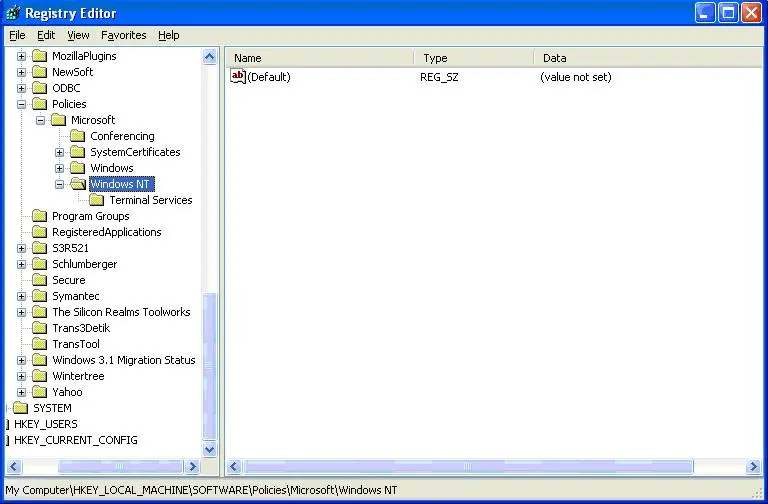 “HKEY_LOCAL_MACHINE\SOFTWARE\Policies\Microsoft\Windows NT”